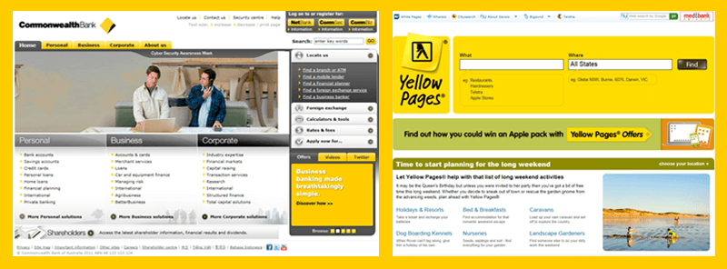 웹에서 빨간색 사용 예시 - 노란색(Yellow - #FFFF00): 태양, 지성, 빛, 학습 능력, 기억력, 사회적 에너지, 협동, 기쁨, 행복, 지성, 낙천주의, 순수함, 열정, 따뜻함, 충성심, 명확성, 지각, 지혜, 정직하지 않음, 비겁함, 추종자, 자신감, 유머, 꿈, 창의력, 행동, 이상주의, 낙천주의, 상상력, 희망, 여름, 철학, 영광, 깨달음의 의를 가집니다.