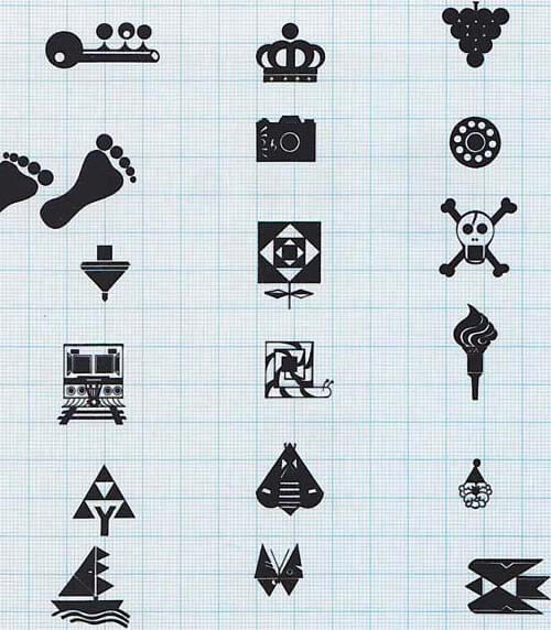 네 번째 연습은 좀 더 감성적인 능력을 필요로 하는데, 원형, 정사각형의 기하학적인 모양만을 사용하여 18개의 이미지를 만듭니다.