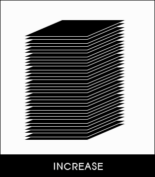 첫 번째 그래픽 디자인 연습은 동일한 크기의 검은색 사각형 4개를 사용해서 굵음, 증가, 역동적, 질서, 긴장, 혼잡 등의 단어의 의미를 그래픽 이미지로 표현해 봅니다. 이 그래픽 이미지를 표현할 때는 접촉, 프레임, 중첩, 자르기, 착각을 일으키는 공간, 크기 대비, 방향 대비, 공간 대비, 위치 대비, 음-양 공간을 활용합니다.